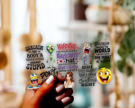 Sarcastic 16oz UV DTF Wrap for Libbey Glass Can | Peel & Stick Cup Wrap | Waterproof & Scratch Resistant Tumbler Decal