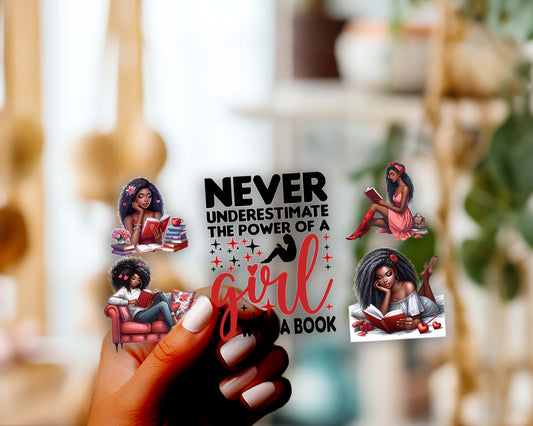 A Girl With a Book 16oz UV DTF Wrap for Libbey Glass Can | Peel & Stick Cup Wrap | Waterproof & Scratch Resistant Tumbler Decal