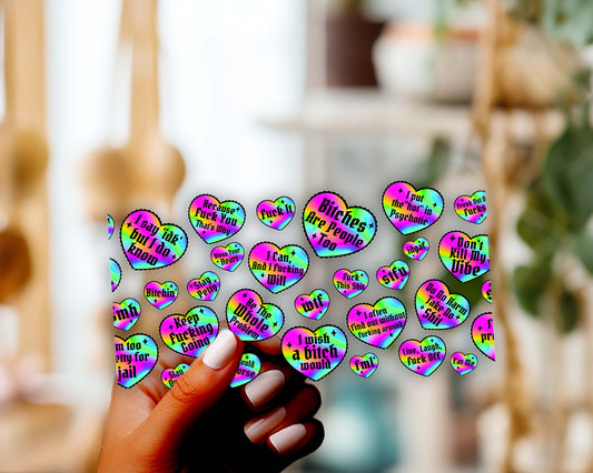 Sarcastic Hearts 16oz UV DTF Wrap for Libbey Glass Can | Peel & Stick Cup Wrap | Waterproof & Scratch Resistant Tumbler Decal