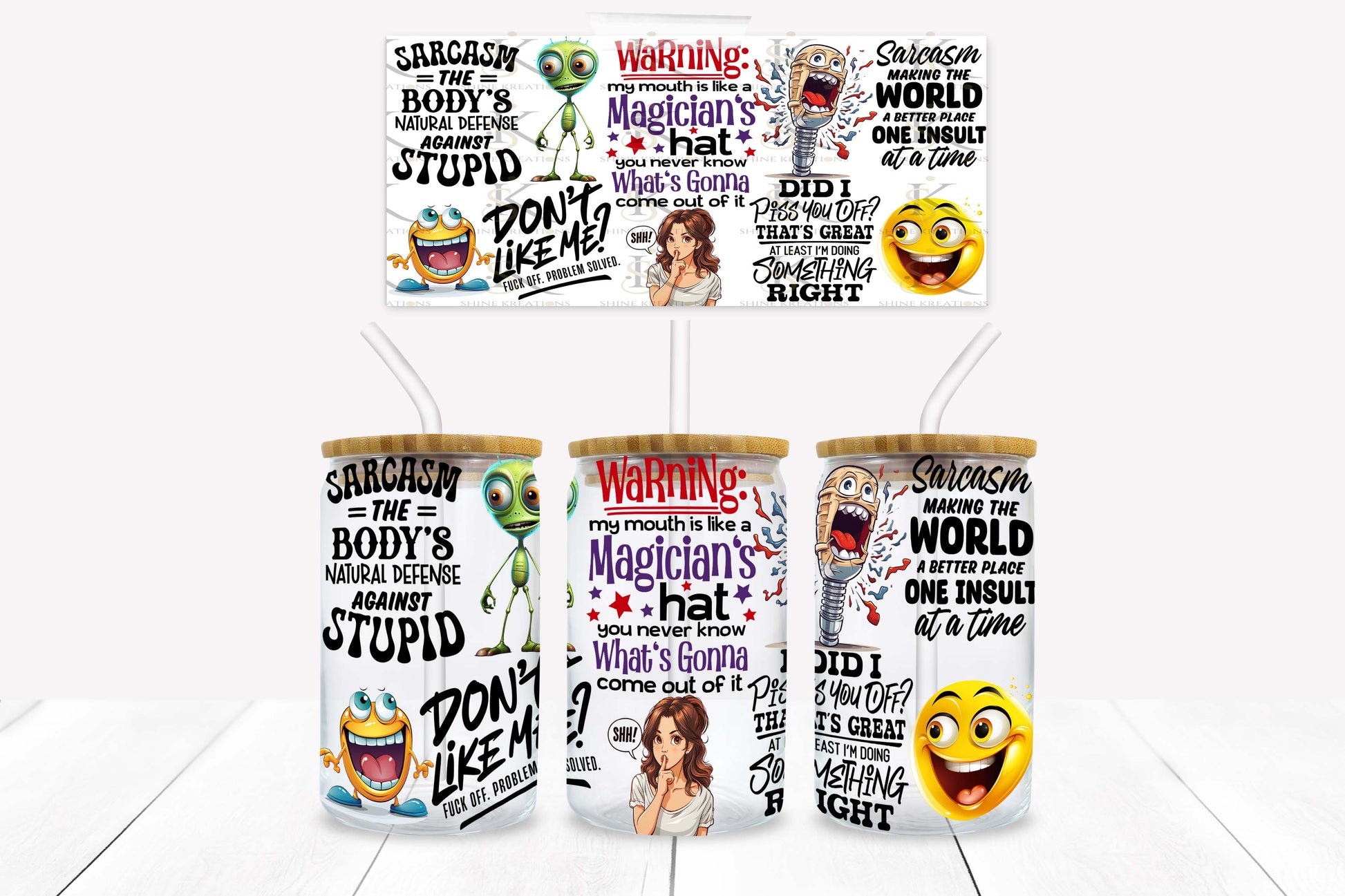 Sarcasm 16oz UV DTF Wrap for Libbey Glass Can | Peel & Stick Cup Wrap | Waterproof & Scratch Resistant Tumbler Decal