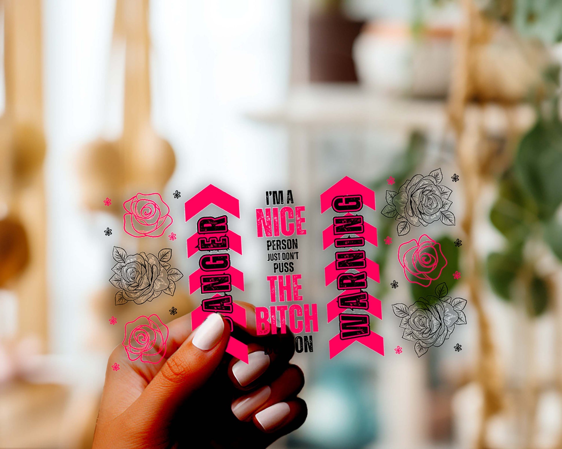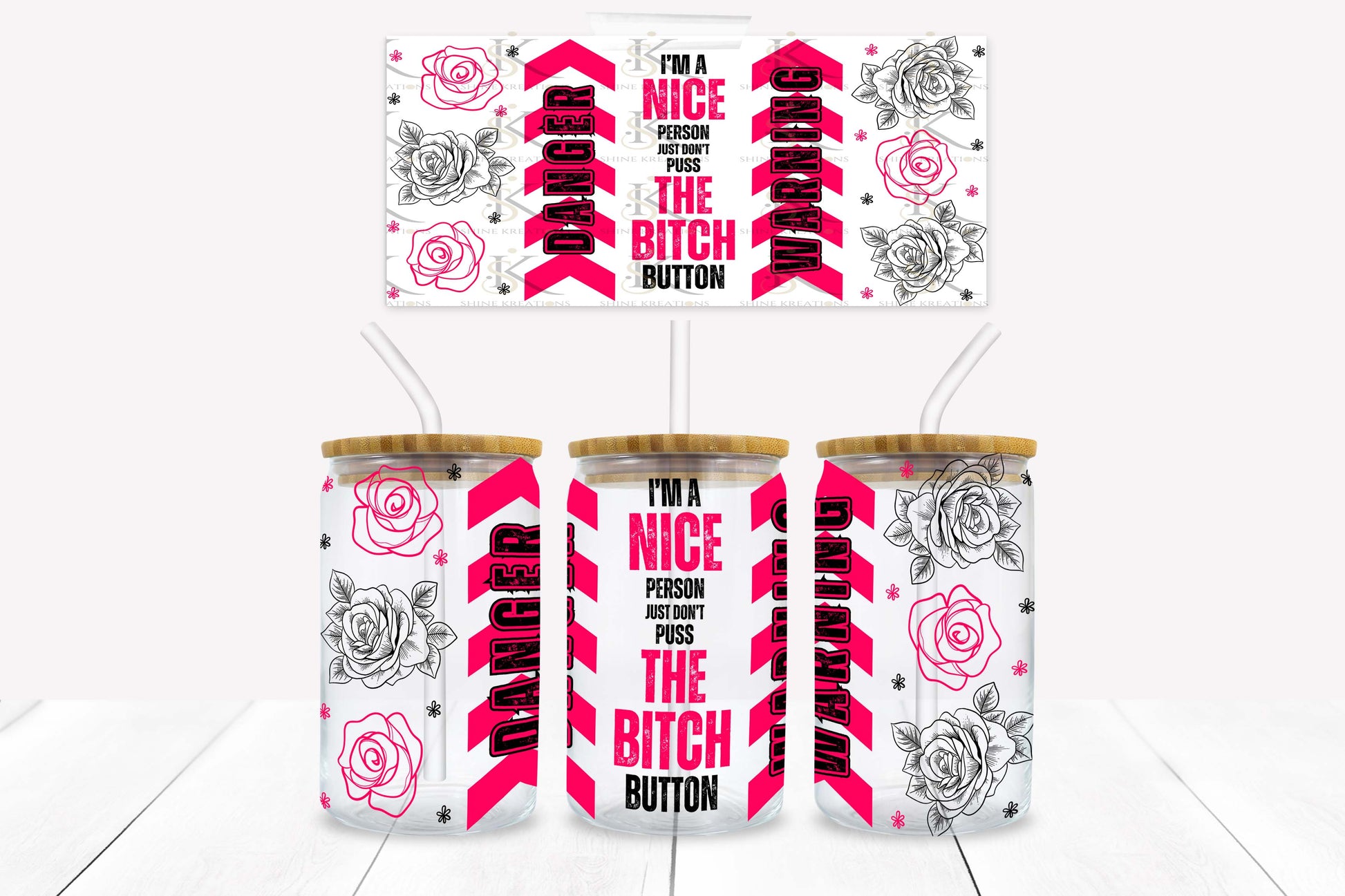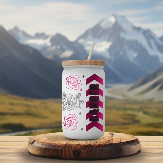 Pink Warning 16oz UV DTF Wrap for Libbey Glass Can | Peel & Stick Cup Wrap | Waterproof & Scratch Resistant Tumbler Decal
