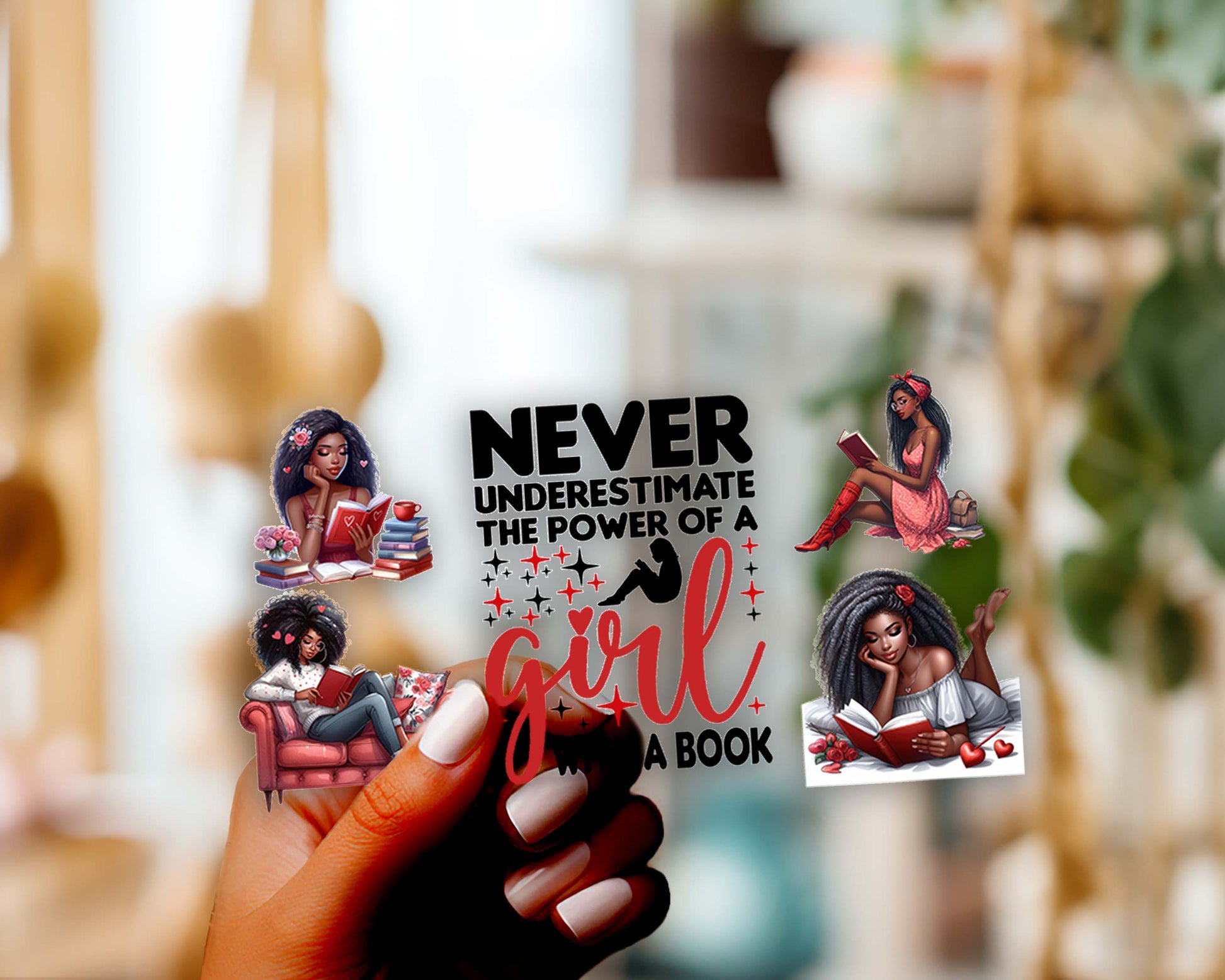 A Girl With a Book 16oz UV DTF Wrap for Libbey Glass Can | Peel & Stick Cup Wrap | Waterproof & Scratch Resistant Tumbler Decal